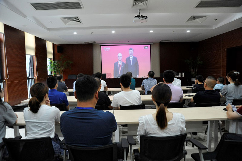 2021年6月29日上午10點(diǎn),保安公司組織黨員領(lǐng)導(dǎo)干部、公司本部全體員工集中收聽(tīng)觀看“七一勛章”頒授儀式。