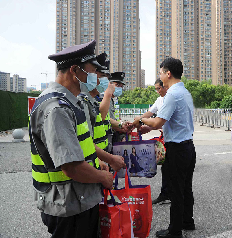 夏日酷暑,烈日炎炎。近日來,南通地區(qū)持續(xù)高溫天氣。城建集團領導則心系著戶外高溫作業(yè)的一線員工,開展了“送清涼、促安全、防疫情”高溫慰問活動。8月3日上午,城建集團黨委書記、董事長張建中,副總經理朱建林、副總經理董新平、工程管理部部長冒俊、辦公室主任萬晶一行在保安公司董事長沈鑫華的陪同下,看望、慰問了戶外高溫作業(yè)的一線保安隊員,向他們送上了集團領導的關懷與問候。